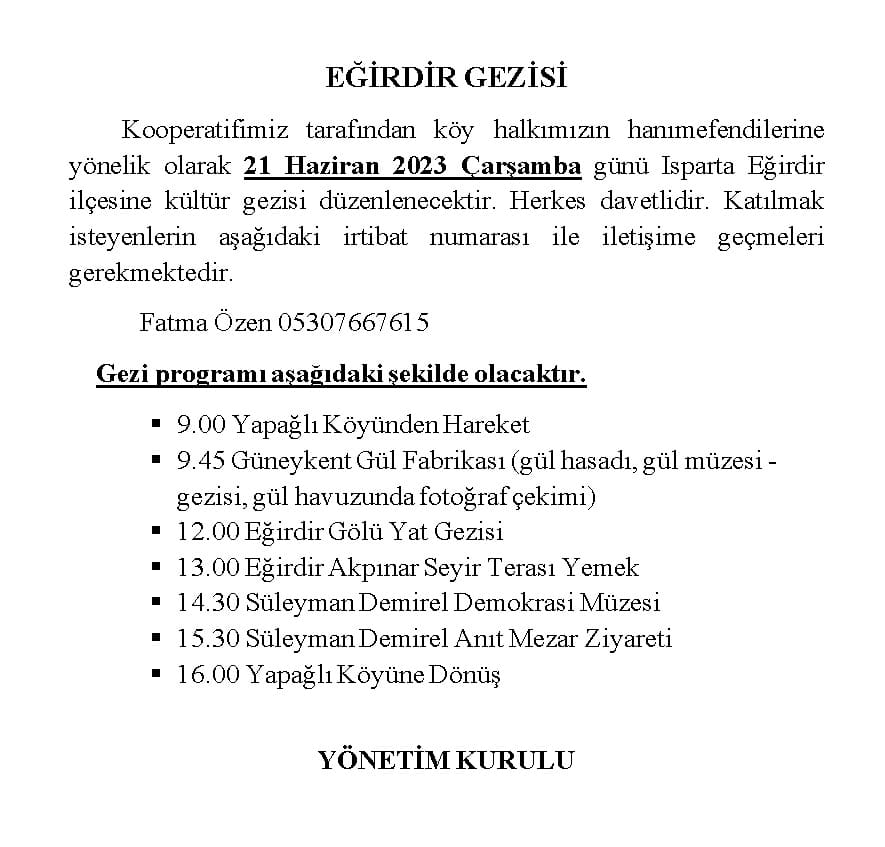 Adres: Yapağlı Köyü Dinar/Afyonkarahisar
