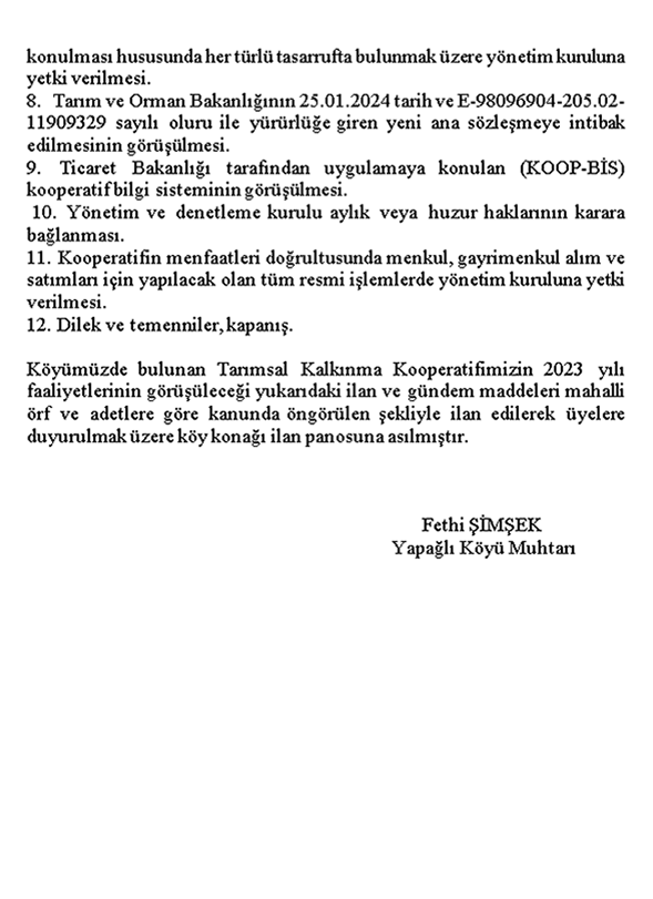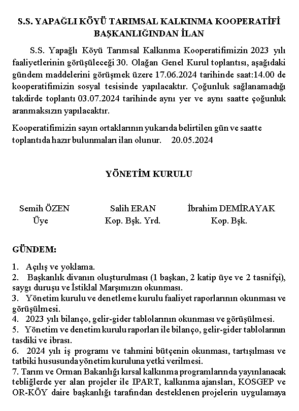 Değer Katanlar Sevgili Yapağlı Köy halkı, saygıdeğer üy...